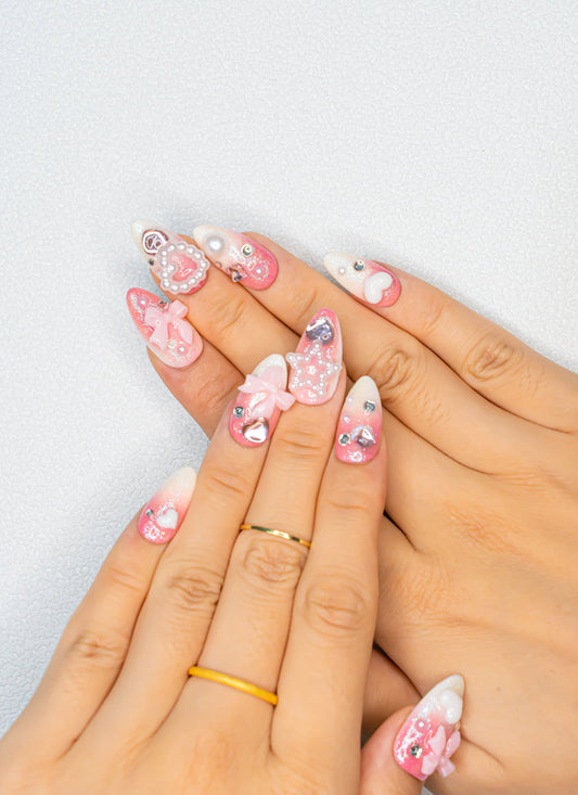 Pink Bow Rhinestones Ballet Slipper Press-on Nail|Glue Nails|Nail Art|False Nails|Elegant Nails|Summer Sale|Fancy Event Nails|Trendy Nails